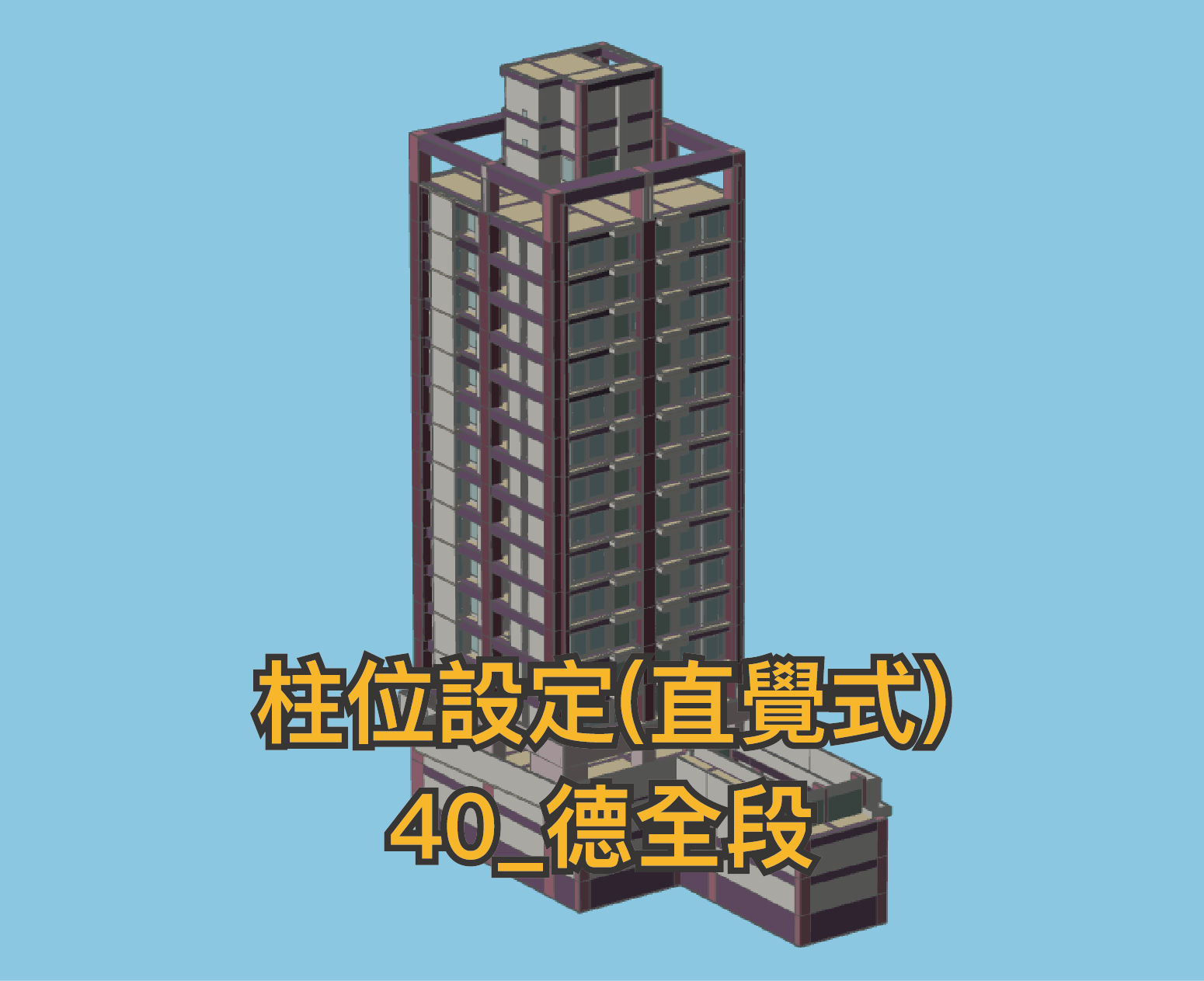 教學項目:建物資料_直覺式案件名稱:40. 德全使用用途:集合住宅大樓構造種類:RC 造建築規模:地下2,地上14,屋突3說明:柱位設定,直覺式