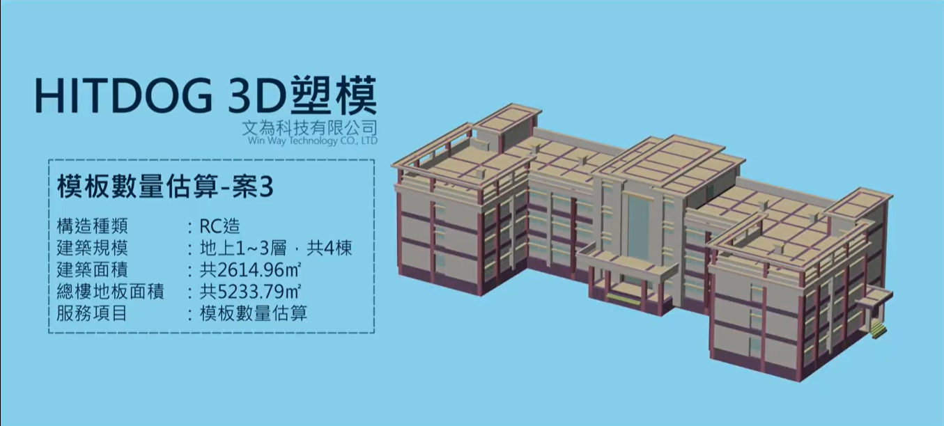 名稱:模板數量估算_案3構造:RC造規模:4棟,地上1~3項目:模板數量估算
