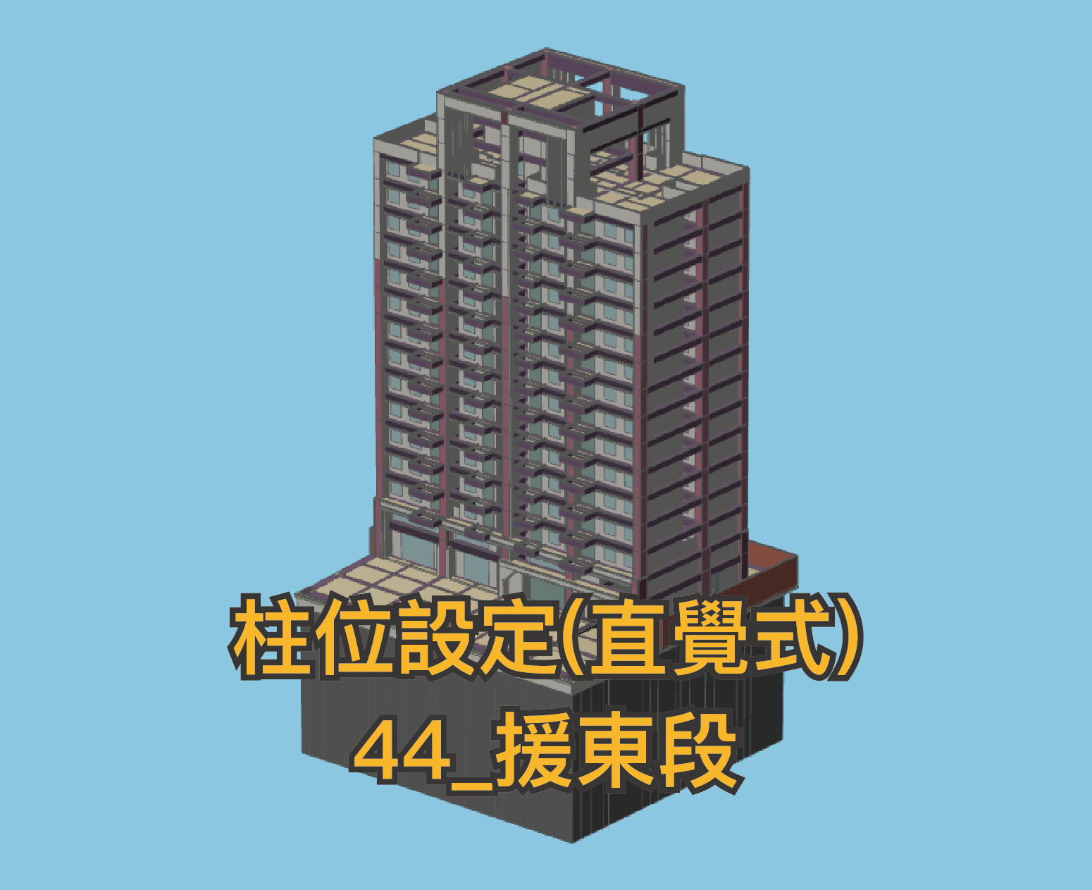教學項目:建物資料_直覺式案件名稱:44. 援東建築用途: 集合住宅大樓構造種類:RC 造建築規模:地下3,地上15,屋突3說明:柱位設定,直覺式