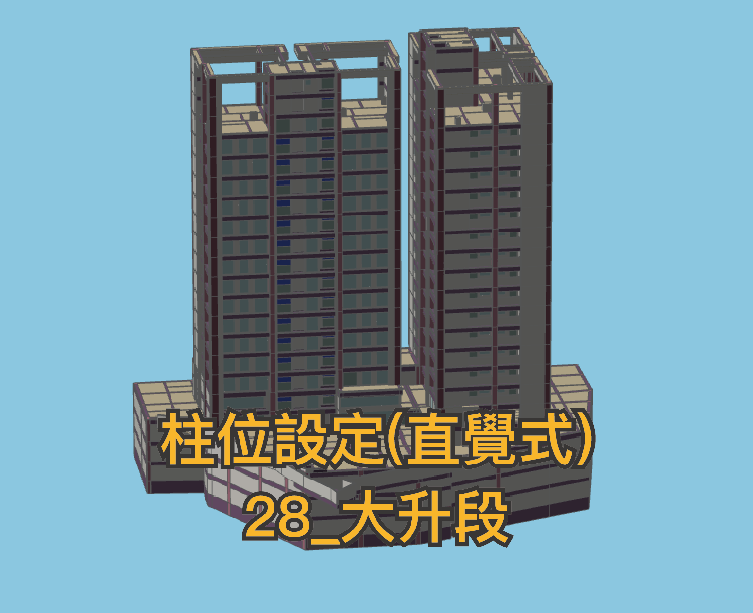 教學項目:建物資料_直覺式案件名稱:28. 大升建築用途: 集合住宅大樓構造種類:RC 造建築規模:A棟地下3,地上15,屋突3;B棟地下3,地上16,屋突3說明:柱位設定,直覺式