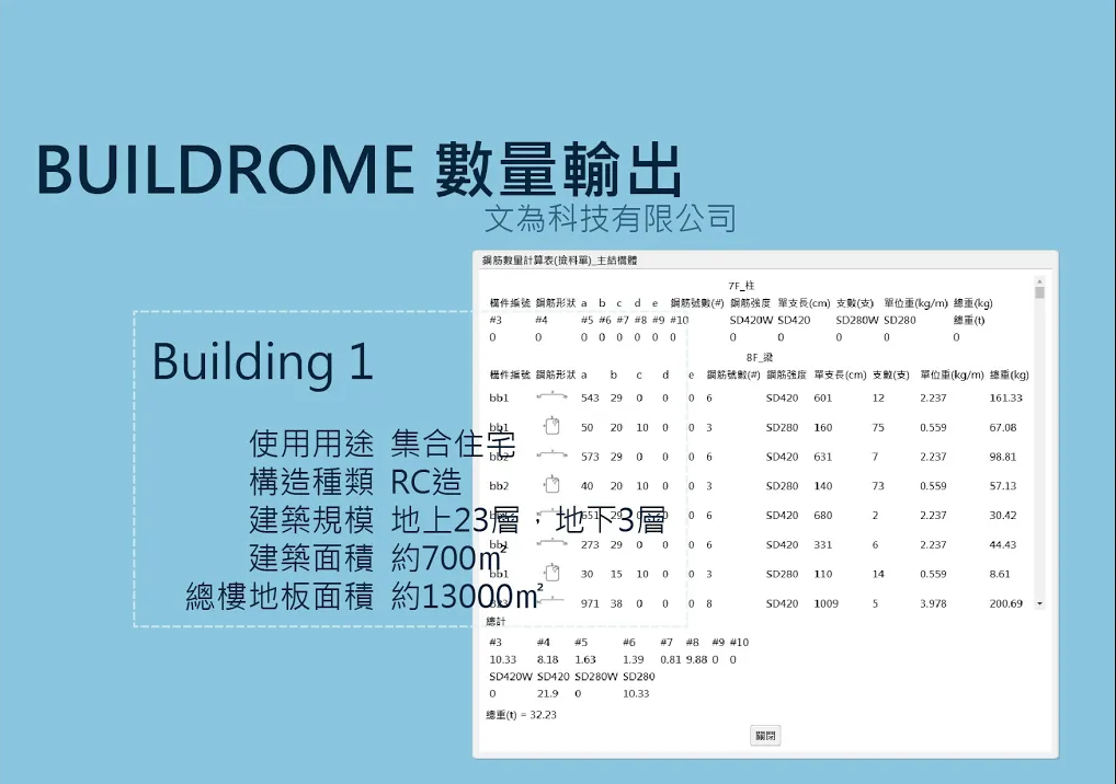 教學項目:撿料及結構等數量表輸出案件名稱:S02 - 花苑案用途:集合住宅構造:RC造規模:地上23層,地下3層說明:結構估算及數量表輸出計算