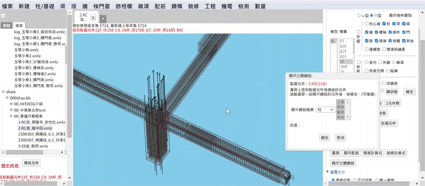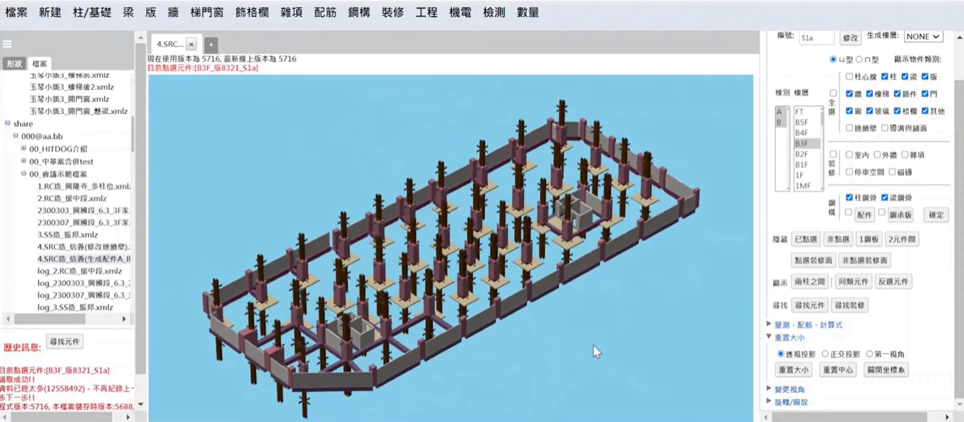 使用功能:結構體顯示配筋案件名稱:S01. 信益案建築用途:集合住宅構造種類:SRC 造建築規模:地下5,地上32說明:SRC結構體模型組成說明