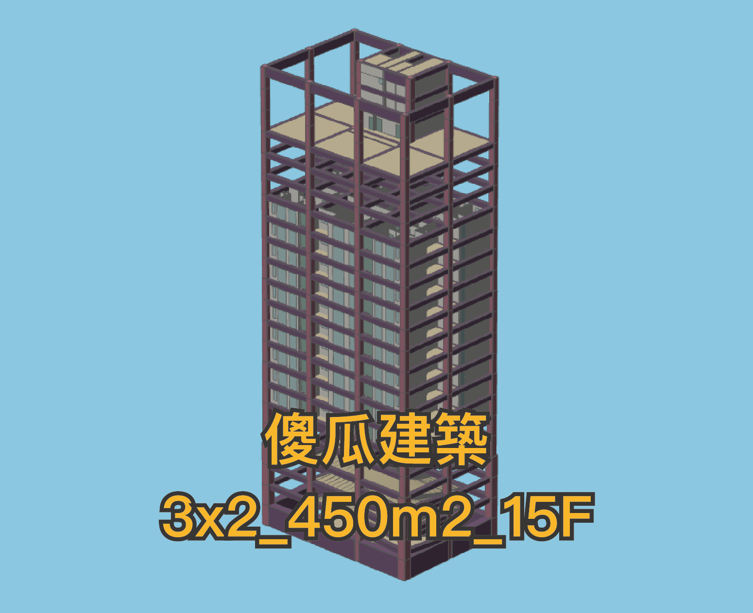 使用功能:傻瓜建築使用用途:集合住宅大樓構造種類:RC 造建築規模:地下3,地上15,屋突3建築面積:450平方公尺